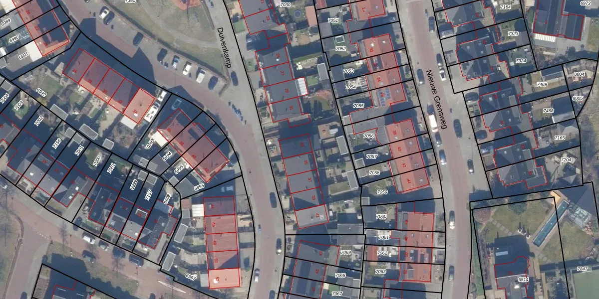 Het perceel waarop Duivenkamp 33 staat heeft een oppervlakte van 4615 m². Dit is een zeer groot perceel. De perceeloppervlakte wordt geregistreerd door het Kadaster. Gedetailleerde informatie over de maten van dit perceel kunt u vinden in het rapport Kadastrale kaart met maatvoering van Duivenkamp 33.