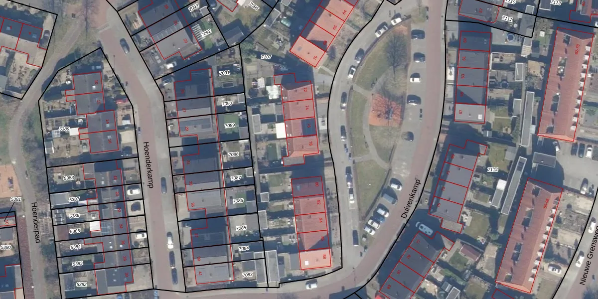Duivenkamp 78 is gelegen op kadastraal perceel HDW00B7107. Deze kadastrale aanduiding is uniek en wordt gebruikt door het Kadaster om eigendomsrechten en andere zakelijke rechten vast te leggen. Het perceel maakt onderdeel uit van de kadastrale gemeente Harderwijk.