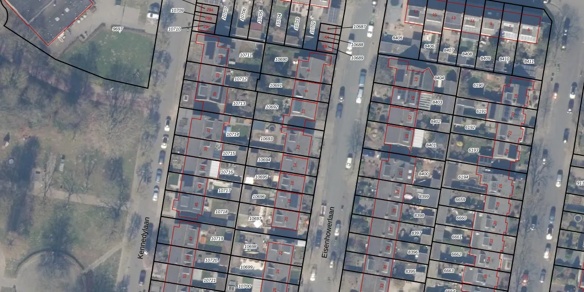 Het perceel waarop Eisenhowerlaan 12 staat heeft een oppervlakte van 237 m². Dit is een middelgroot perceel. De perceeloppervlakte wordt geregistreerd door het Kadaster. Gedetailleerde informatie over de maten van dit perceel kunt u vinden in het rapport Kadastrale kaart met maatvoering van Eisenhowerlaan 12.