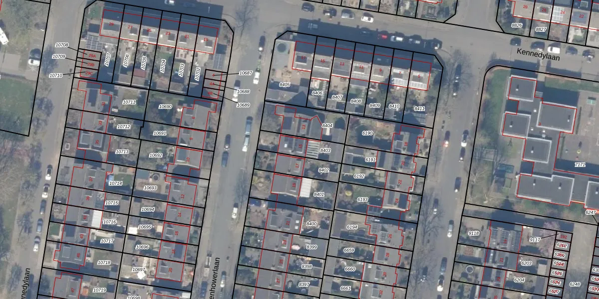 Gebruik de zoekbalk of klik op een perceel voor informatie over de adressen binnen dit perceel.