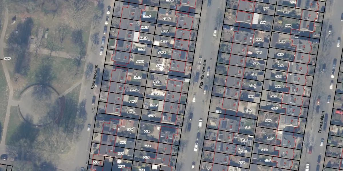 Gebruik de zoekbalk of klik op een perceel voor informatie over de adressen binnen dit perceel.