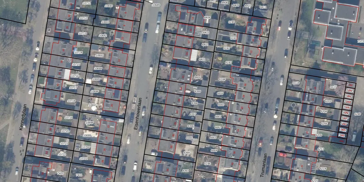 Het perceel waarop Eisenhowerlaan 23 staat heeft een oppervlakte van 186 m². Dit is een middelgroot perceel. De perceeloppervlakte wordt geregistreerd door het Kadaster. Gedetailleerde informatie over de maten van dit perceel kunt u vinden in het rapport Kadastrale kaart met maatvoering van Eisenhowerlaan 23.