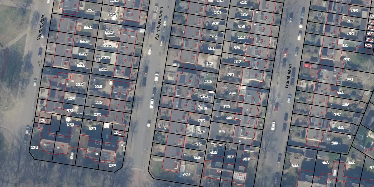 Het perceel waarop Eisenhowerlaan 37 staat heeft een oppervlakte van 186 m². Dit is een middelgroot perceel. De perceeloppervlakte wordt geregistreerd door het Kadaster. Gedetailleerde informatie over de maten van dit perceel kunt u vinden in het rapport Kadastrale kaart met maatvoering van Eisenhowerlaan 37.
