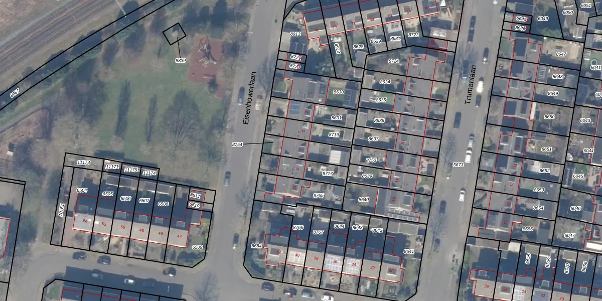 Het perceel waarop Eisenhowerlaan 7 staat heeft een oppervlakte van 186 m². Dit is een middelgroot perceel. De perceeloppervlakte wordt geregistreerd door het Kadaster. Gedetailleerde informatie over de maten van dit perceel kunt u vinden in het rapport Kadastrale kaart met maatvoering van Eisenhowerlaan 7.