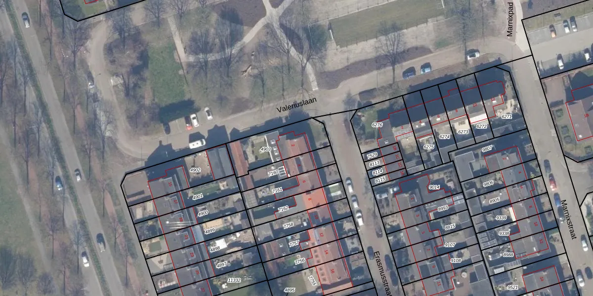 Gebruik de zoekbalk of klik op een perceel voor informatie over de adressen binnen dit perceel.