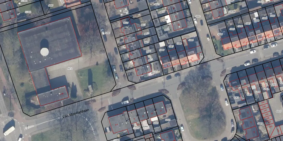 Gebruik de zoekbalk of klik op een perceel voor informatie over de adressen binnen dit perceel.