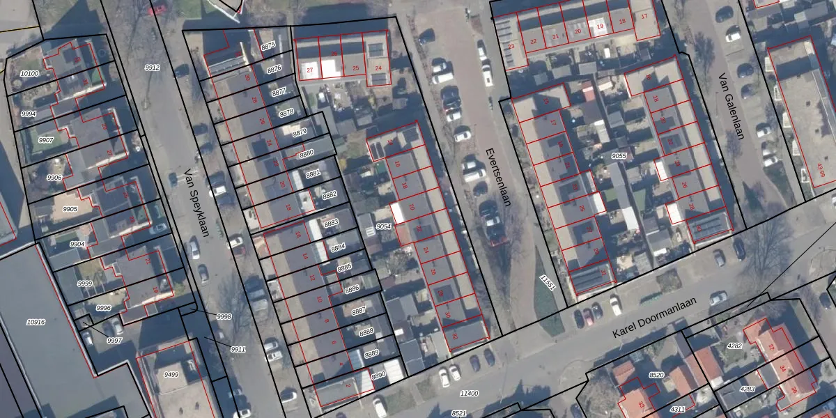 Het perceel waarop Evertsenlaan 20 staat heeft een oppervlakte van 2107 m². Dit is een zeer groot perceel. De perceeloppervlakte wordt geregistreerd door het Kadaster. Gedetailleerde informatie over de maten van dit perceel kunt u vinden in het rapport Kadastrale kaart met maatvoering van Evertsenlaan 20.