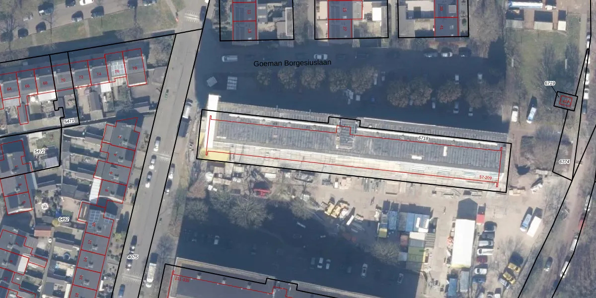Het perceel waarop Goeman Borgesiuslaan 151 staat heeft een oppervlakte van 1771 m². Dit is een zeer groot perceel. De perceeloppervlakte wordt geregistreerd door het Kadaster. Gedetailleerde informatie over de maten van dit perceel kunt u vinden in het rapport Kadastrale kaart met maatvoering van Goeman Borgesiuslaan 151.