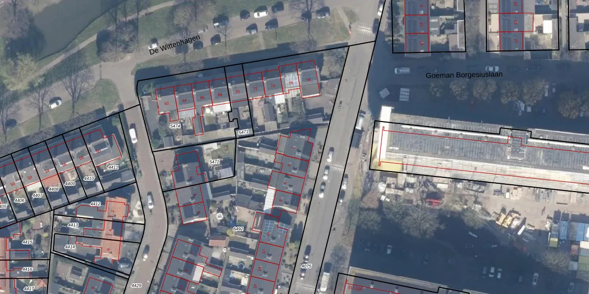 Het perceel waarop Goeman Borgesiuslaan 2 staat heeft een oppervlakte van 5256 m². Dit is een zeer groot perceel. De perceeloppervlakte wordt geregistreerd door het Kadaster. Gedetailleerde informatie over de maten van dit perceel kunt u vinden in het rapport Kadastrale kaart met maatvoering van Goeman Borgesiuslaan 2.
