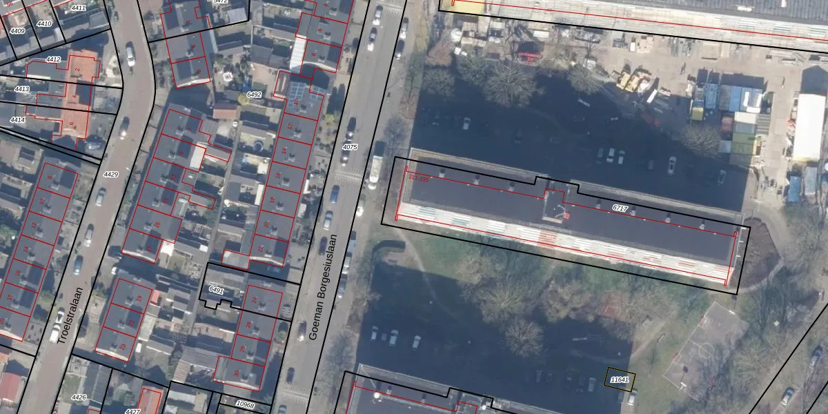 Het perceel waarop Goeman Borgesiuslaan 301 staat heeft een oppervlakte van 1475 m². Dit is een zeer groot perceel. De perceeloppervlakte wordt geregistreerd door het Kadaster. Gedetailleerde informatie over de maten van dit perceel kunt u vinden in het rapport Kadastrale kaart met maatvoering van Goeman Borgesiuslaan 301.