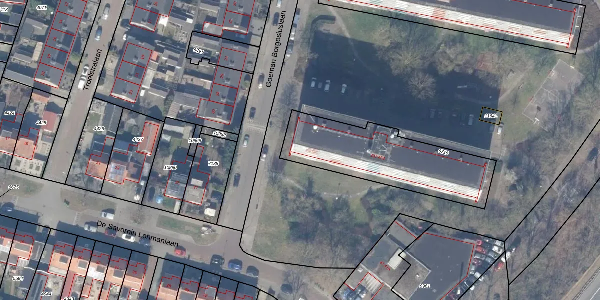 Goeman Borgesiuslaan 421 is gelegen op kadastraal perceel HDW00D6716. Deze kadastrale aanduiding is uniek en wordt gebruikt door het Kadaster om eigendomsrechten en andere zakelijke rechten vast te leggen. Het perceel maakt onderdeel uit van de kadastrale gemeente Harderwijk.