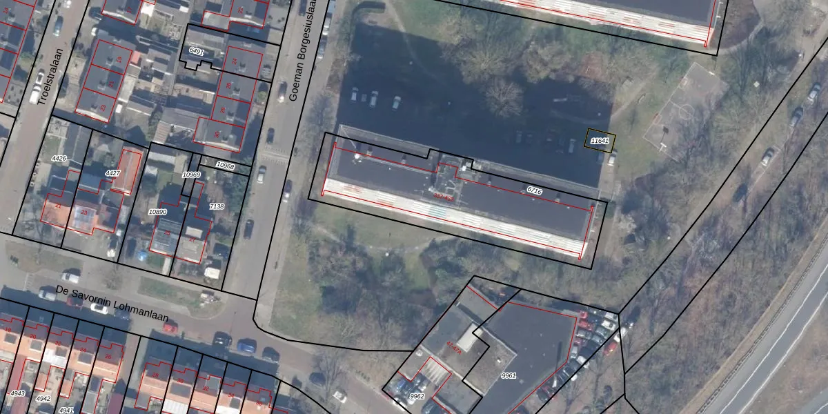 Goeman Borgesiuslaan 425 is gelegen op kadastraal perceel HDW00D6716. Deze kadastrale aanduiding is uniek en wordt gebruikt door het Kadaster om eigendomsrechten en andere zakelijke rechten vast te leggen. Het perceel maakt onderdeel uit van de kadastrale gemeente Harderwijk.