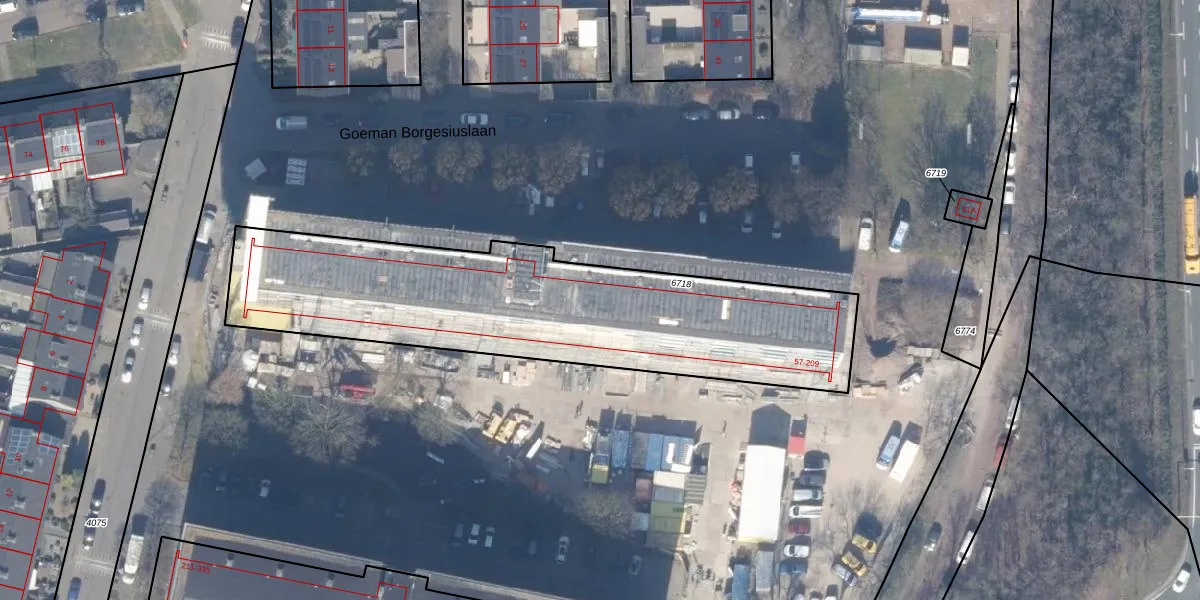 Het perceel waarop Goeman Borgesiuslaan 91 staat heeft een oppervlakte van 1771 m². Dit is een zeer groot perceel. De perceeloppervlakte wordt geregistreerd door het Kadaster. Gedetailleerde informatie over de maten van dit perceel kunt u vinden in het rapport Kadastrale kaart met maatvoering van Goeman Borgesiuslaan 91.