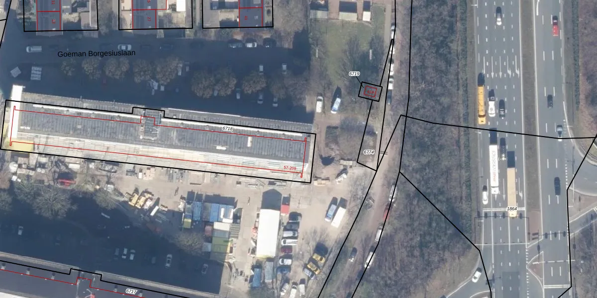 Het perceel waarop Goeman Borgesiuslaan 99 staat heeft een oppervlakte van 1771 m². Dit is een zeer groot perceel. De perceeloppervlakte wordt geregistreerd door het Kadaster. Gedetailleerde informatie over de maten van dit perceel kunt u vinden in het rapport Kadastrale kaart met maatvoering van Goeman Borgesiuslaan 99.