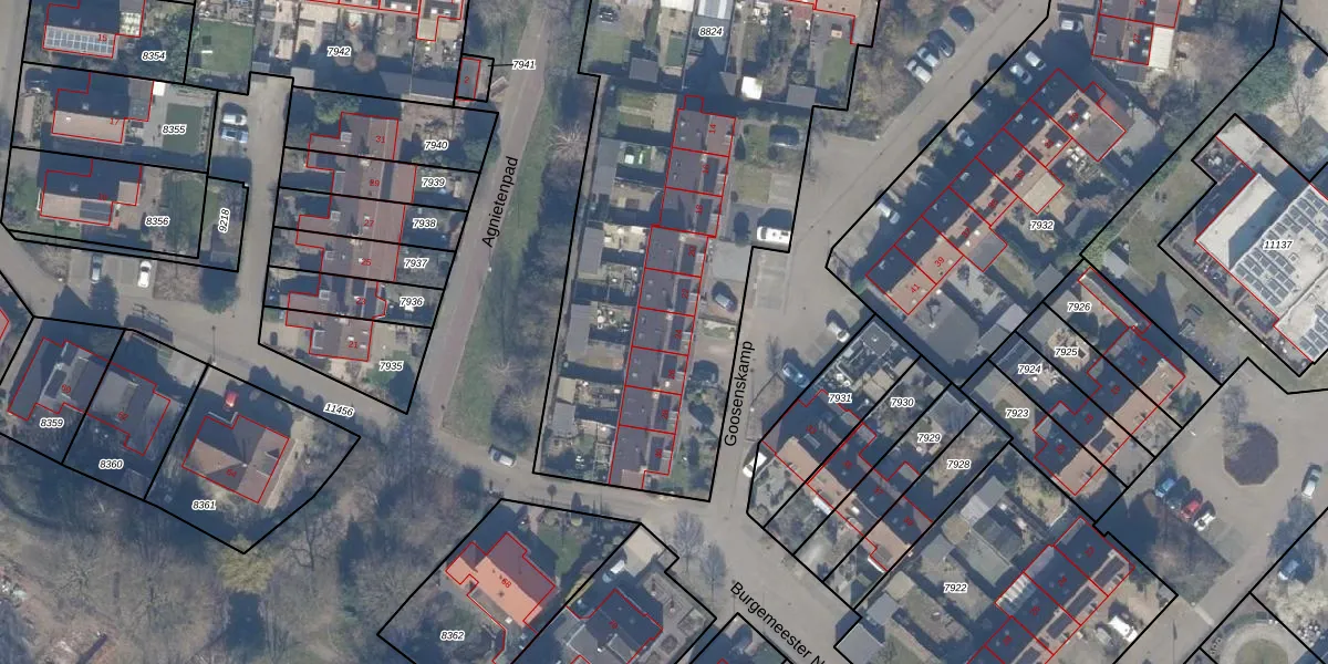 Het perceel waarop Goosenskamp 24 staat heeft een oppervlakte van 3131 m². Dit is een zeer groot perceel. De perceeloppervlakte wordt geregistreerd door het Kadaster. Gedetailleerde informatie over de maten van dit perceel kunt u vinden in het rapport Kadastrale kaart met maatvoering van Goosenskamp 24.