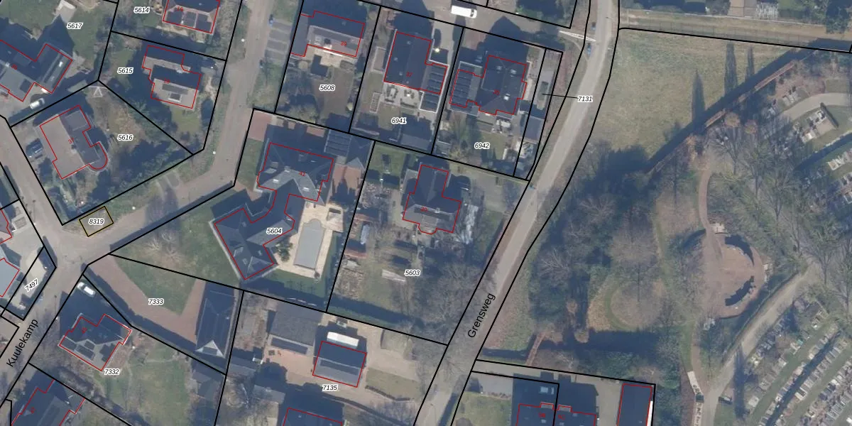 Het perceel waarop Grensweg 30 staat heeft een oppervlakte van 1415 m². Dit is een zeer groot perceel. De perceeloppervlakte wordt geregistreerd door het Kadaster. Gedetailleerde informatie over de maten van dit perceel kunt u vinden in het rapport Kadastrale kaart met maatvoering van Grensweg 30.
