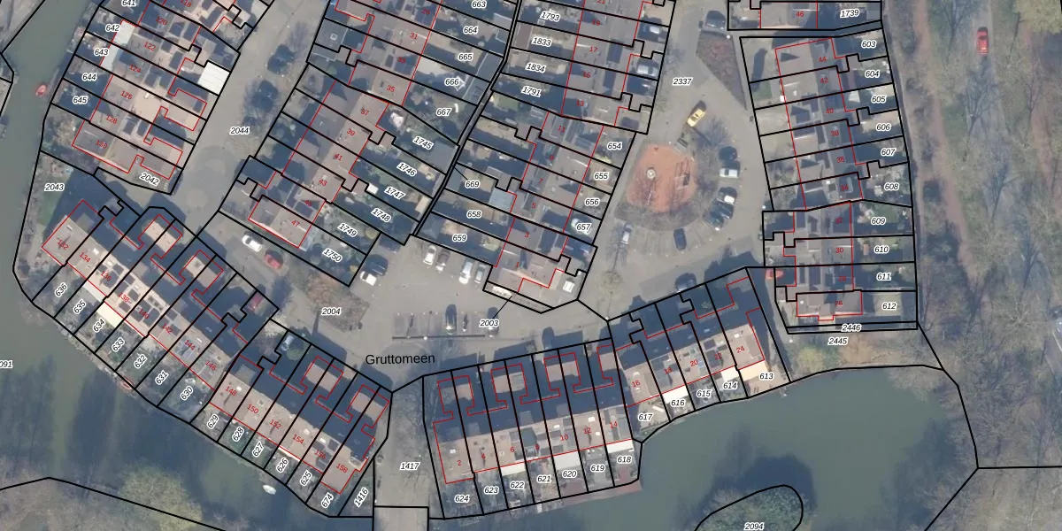 Gebruik de zoekbalk of klik op een perceel voor informatie over de adressen binnen dit perceel.