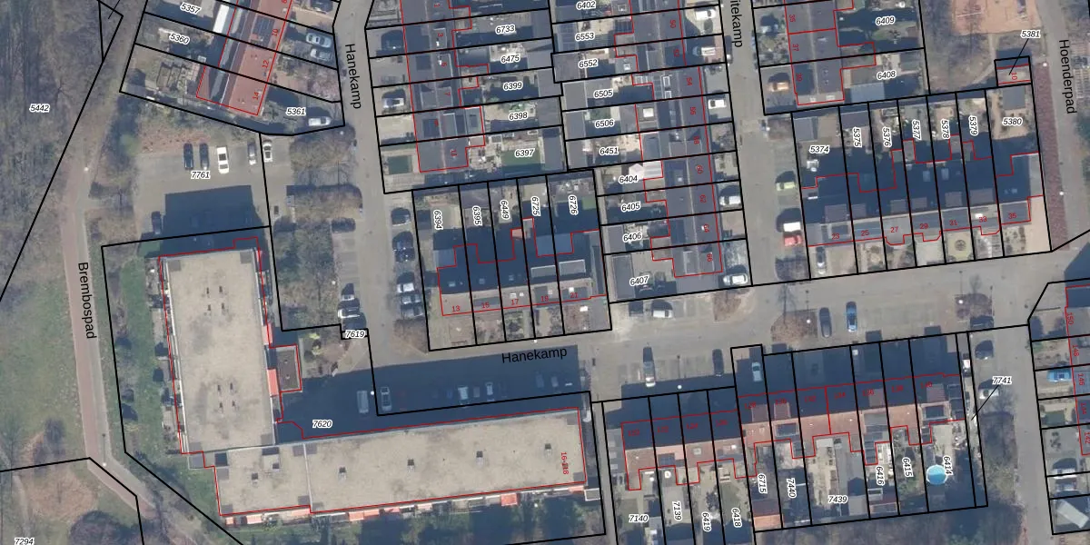 Hanekamp 19 is gelegen op kadastraal perceel HDW00B6725. Deze kadastrale aanduiding is uniek en wordt gebruikt door het Kadaster om eigendomsrechten en andere zakelijke rechten vast te leggen. Het perceel maakt onderdeel uit van de kadastrale gemeente Harderwijk.
