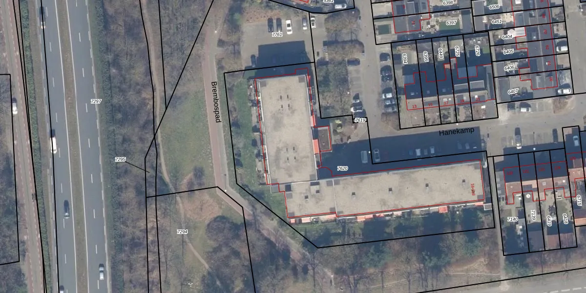 Het perceel waarop Hanekamp 56 staat heeft een oppervlakte van 3330 m². Dit is een zeer groot perceel. De perceeloppervlakte wordt geregistreerd door het Kadaster. Gedetailleerde informatie over de maten van dit perceel kunt u vinden in het rapport Kadastrale kaart met maatvoering van Hanekamp 56.