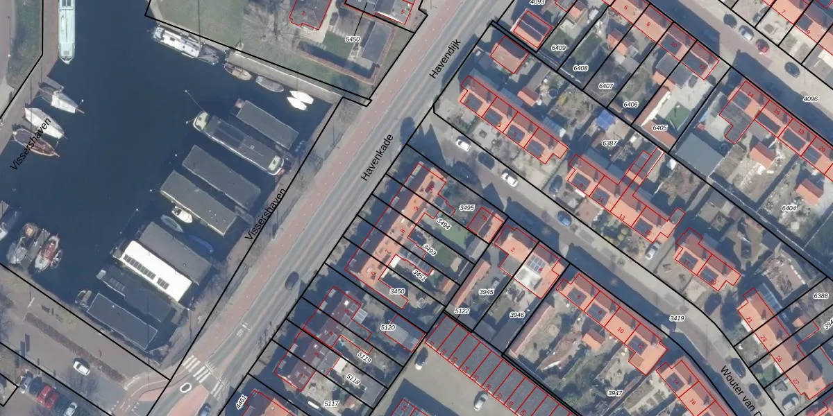 Gebruik de zoekbalk of klik op een perceel voor informatie over de adressen binnen dit perceel.