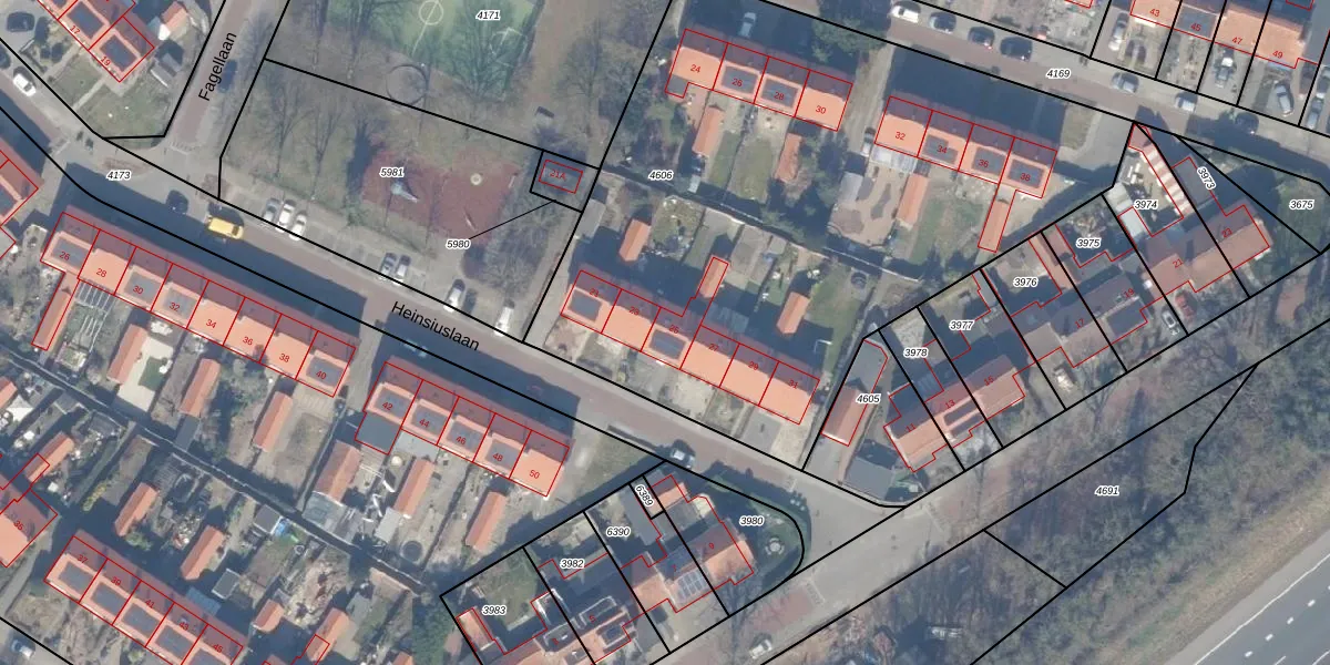 Het perceel waarop Heinsiuslaan 25 staat heeft een oppervlakte van 3588 m². Dit is een zeer groot perceel. De perceeloppervlakte wordt geregistreerd door het Kadaster. Gedetailleerde informatie over de maten van dit perceel kunt u vinden in het rapport Kadastrale kaart met maatvoering van Heinsiuslaan 25.