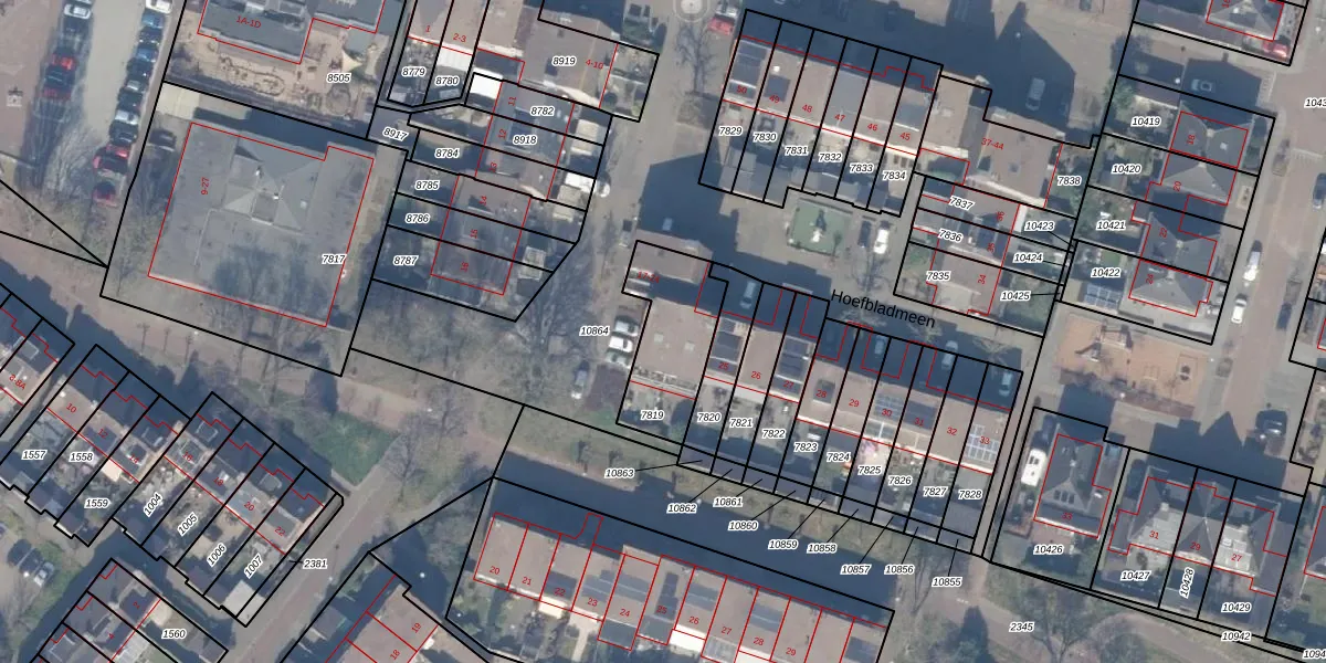 Hoefbladmeen 21 is gelegen op kadastraal perceel HDW00D7819. Deze kadastrale aanduiding is uniek en wordt gebruikt door het Kadaster om eigendomsrechten en andere zakelijke rechten vast te leggen. Het perceel maakt onderdeel uit van de kadastrale gemeente Harderwijk.