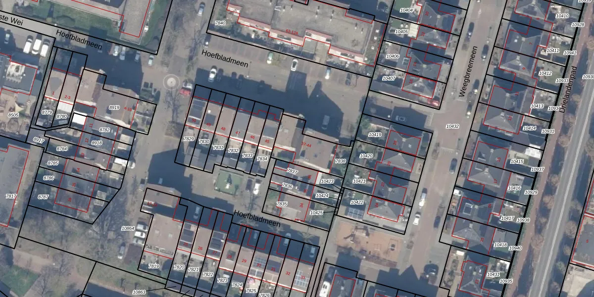 Hoefbladmeen 39 is gelegen op kadastraal perceel HDW00D7838. Deze kadastrale aanduiding is uniek en wordt gebruikt door het Kadaster om eigendomsrechten en andere zakelijke rechten vast te leggen. Het perceel maakt onderdeel uit van de kadastrale gemeente Harderwijk.