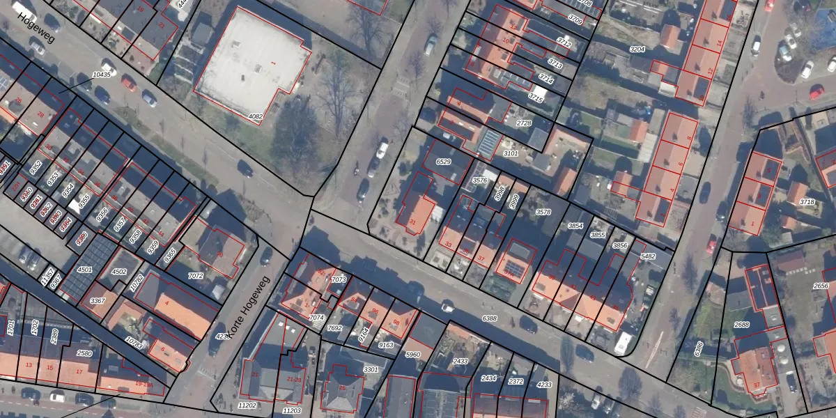 Gebruik de zoekbalk of klik op een perceel voor informatie over de adressen binnen dit perceel.