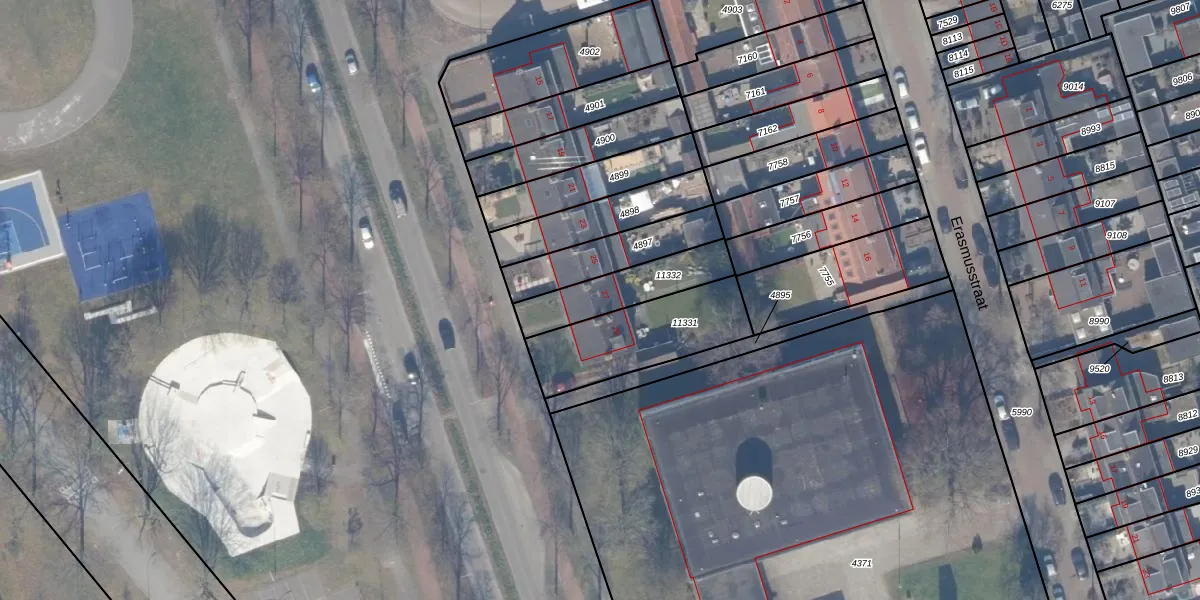 Gebruik de zoekbalk of klik op een perceel voor informatie over de adressen binnen dit perceel.