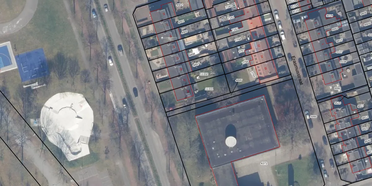 Gebruik de zoekbalk of klik op een perceel voor informatie over de adressen binnen dit perceel.