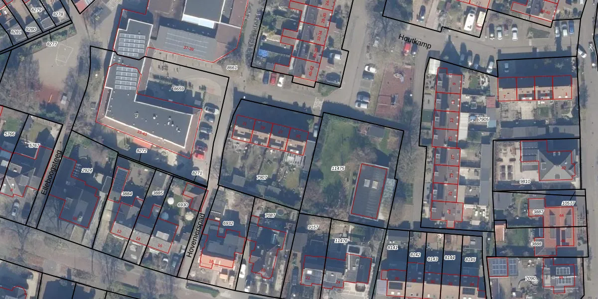 Het perceel waarop Houtkamp 25 staat heeft een oppervlakte van 895 m². Dit is een groot perceel. De perceeloppervlakte wordt geregistreerd door het Kadaster. Gedetailleerde informatie over de maten van dit perceel kunt u vinden in het rapport Kadastrale kaart met maatvoering van Houtkamp 25.