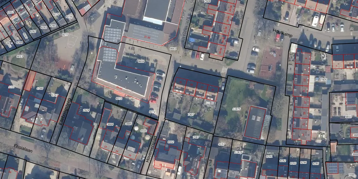 Het perceel waarop Houtkamp 31 staat heeft een oppervlakte van 895 m². Dit is een groot perceel. De perceeloppervlakte wordt geregistreerd door het Kadaster. Gedetailleerde informatie over de maten van dit perceel kunt u vinden in het rapport Kadastrale kaart met maatvoering van Houtkamp 31.