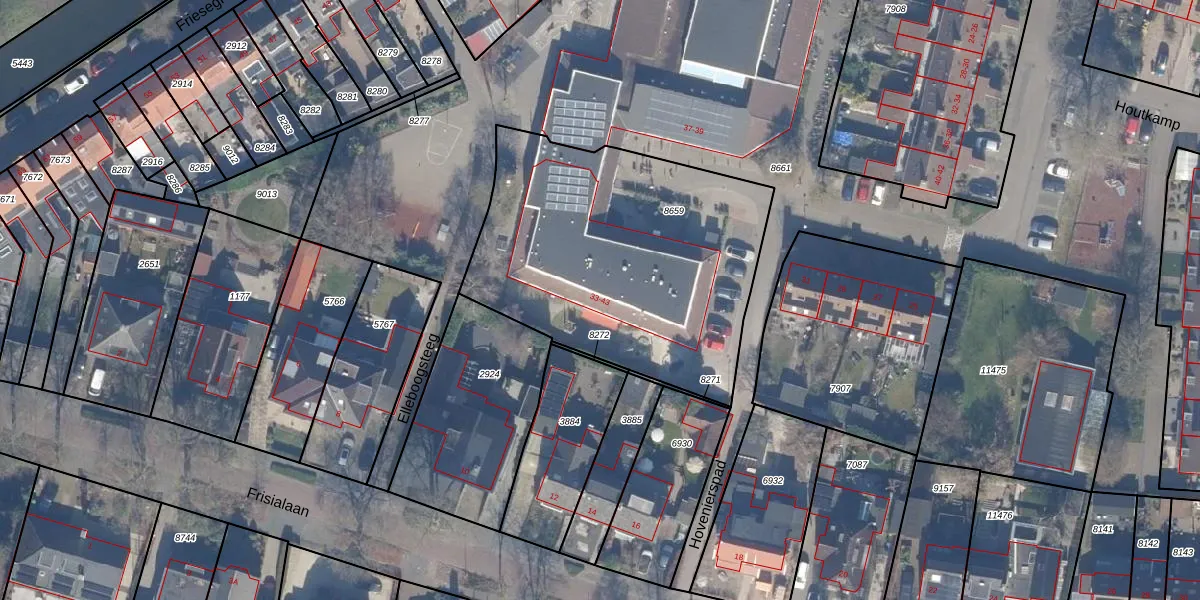 Het perceel waarop Houtkamp 35 staat heeft een oppervlakte van 1570 m². Dit is een zeer groot perceel. De perceeloppervlakte wordt geregistreerd door het Kadaster. Gedetailleerde informatie over de maten van dit perceel kunt u vinden in het rapport Kadastrale kaart met maatvoering van Houtkamp 35.