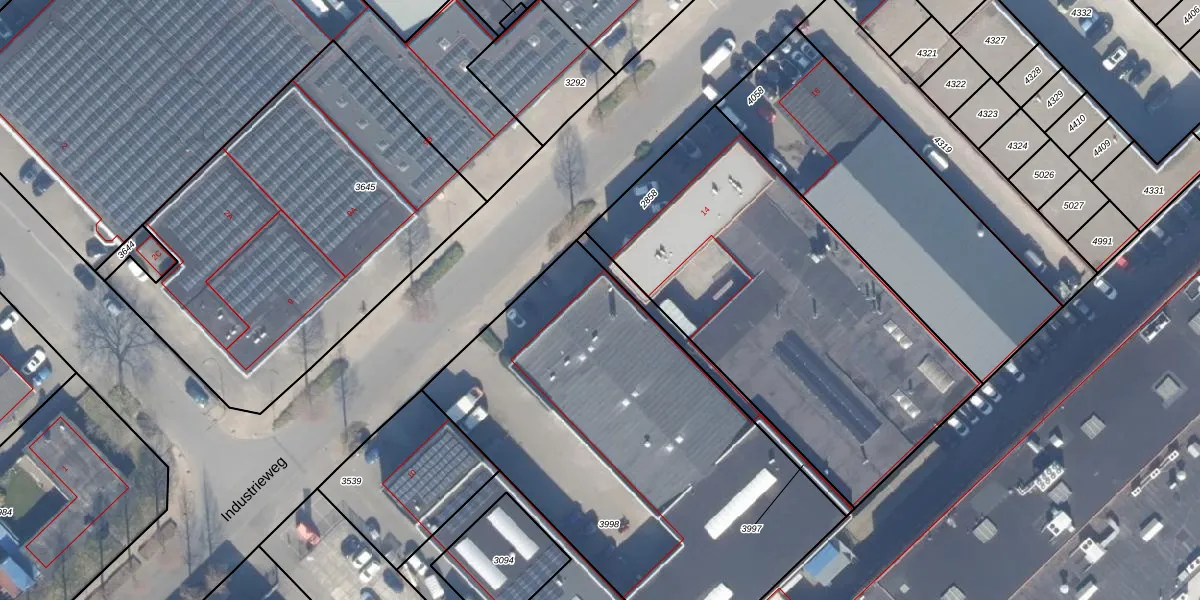 Het perceel waarop Industrieweg 12-A staat heeft een oppervlakte van 2335 m². Dit is een zeer groot perceel. De perceeloppervlakte wordt geregistreerd door het Kadaster. Gedetailleerde informatie over de maten van dit perceel kunt u vinden in het rapport Kadastrale kaart met maatvoering van Industrieweg 12-A.