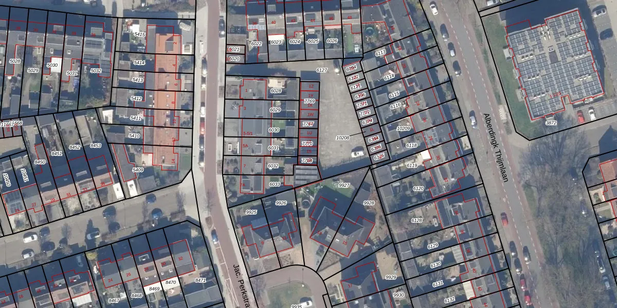 Het perceel waarop Jac. Perkstraat 1-S staat heeft een oppervlakte van 56 m². Dit is een klein perceel. De perceeloppervlakte wordt geregistreerd door het Kadaster. Gedetailleerde informatie over de maten van dit perceel kunt u vinden in het rapport Kadastrale kaart met maatvoering van Jac. Perkstraat 1-S.