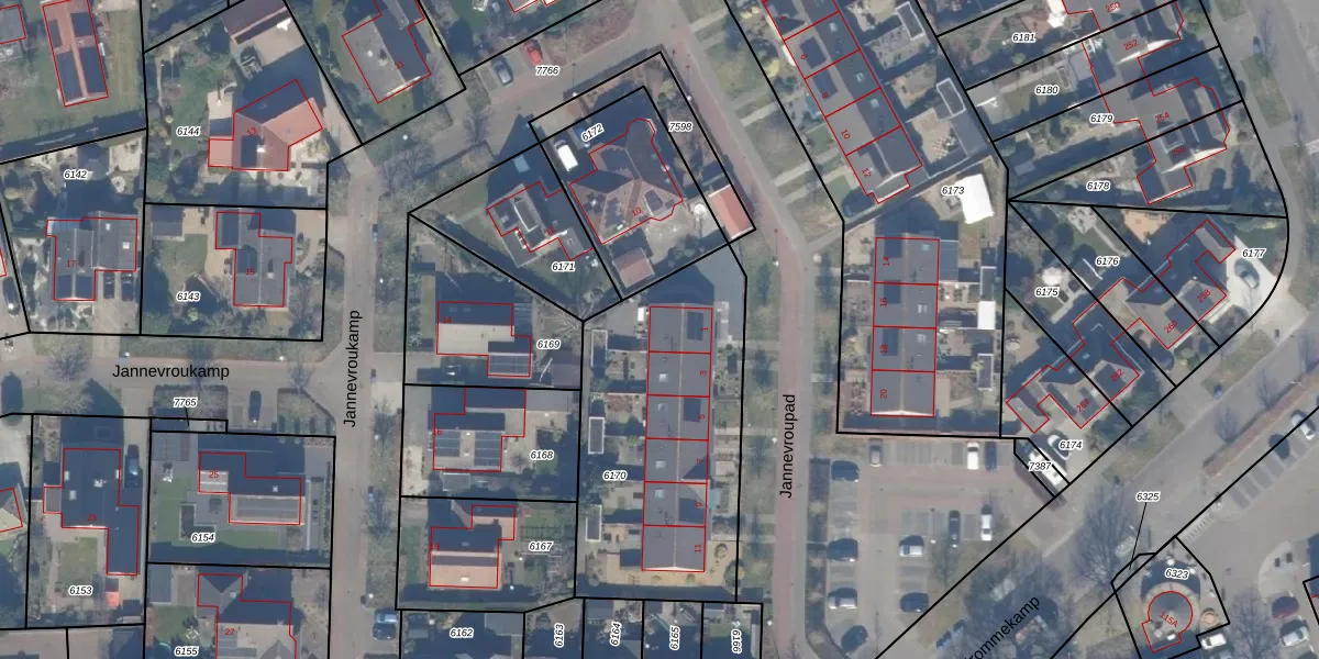 Jannevroupad 1 is gelegen op kadastraal perceel HDW00B6170. Deze kadastrale aanduiding is uniek en wordt gebruikt door het Kadaster om eigendomsrechten en andere zakelijke rechten vast te leggen. Het perceel maakt onderdeel uit van de kadastrale gemeente Harderwijk.