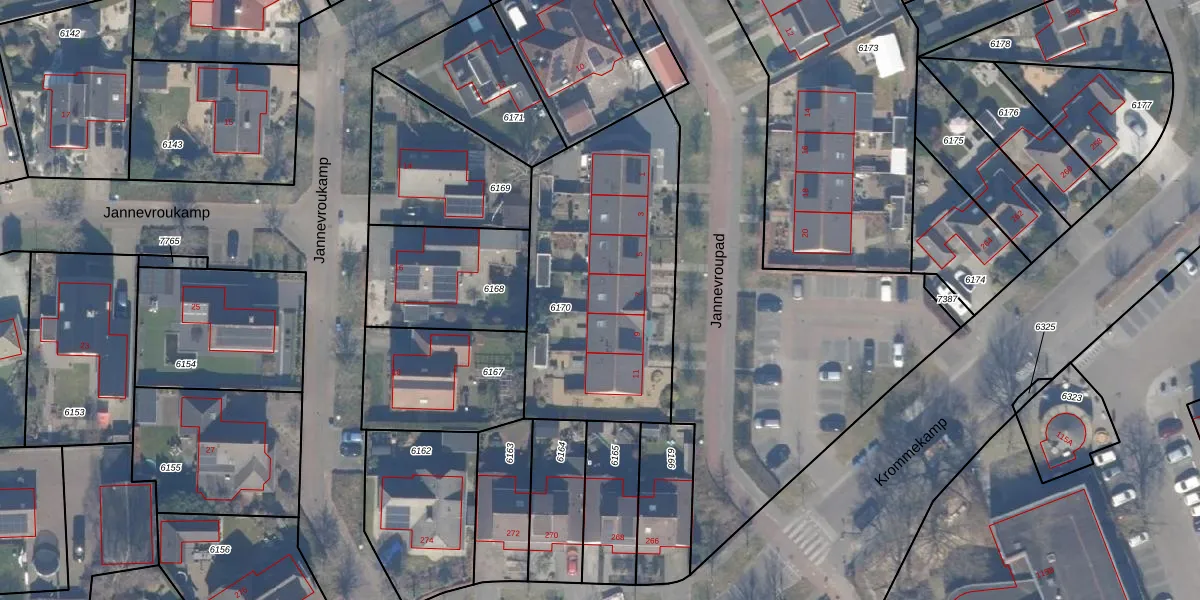 Jannevroupad 7 is gelegen op kadastraal perceel HDW00B6170. Deze kadastrale aanduiding is uniek en wordt gebruikt door het Kadaster om eigendomsrechten en andere zakelijke rechten vast te leggen. Het perceel maakt onderdeel uit van de kadastrale gemeente Harderwijk.