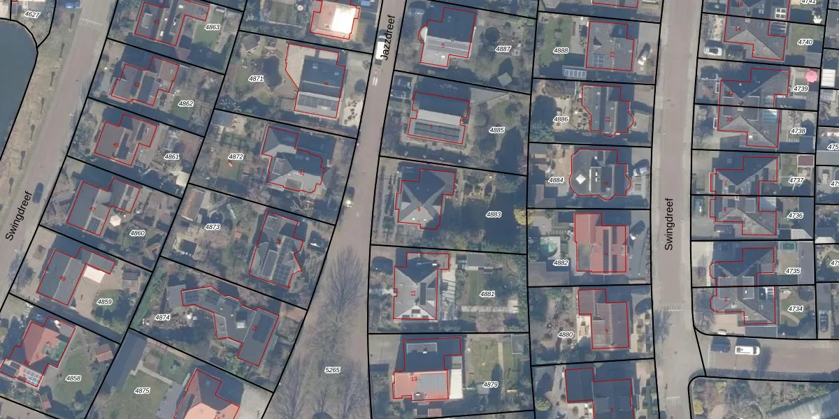 Het perceel waarop Jazzdreef 9 staat heeft een oppervlakte van 730 m². Dit is een groot perceel. De perceeloppervlakte wordt geregistreerd door het Kadaster. Gedetailleerde informatie over de maten van dit perceel kunt u vinden in het rapport Kadastrale kaart met maatvoering van Jazzdreef 9.
