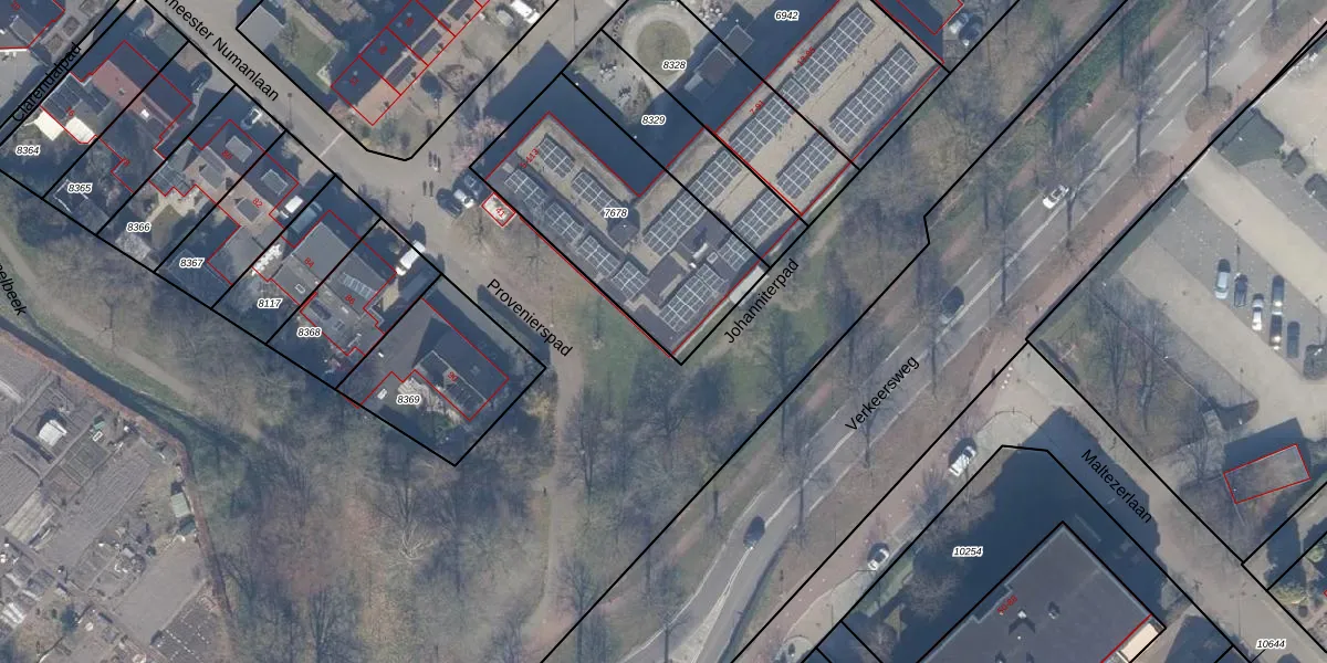 Het perceel waarop Johanniterlaan 97 staat heeft een oppervlakte van 870 m². Dit is een groot perceel. De perceeloppervlakte wordt geregistreerd door het Kadaster. Gedetailleerde informatie over de maten van dit perceel kunt u vinden in het rapport Kadastrale kaart met maatvoering van Johanniterlaan 97.