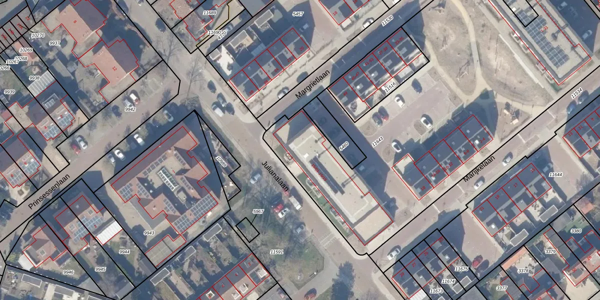 Het perceel waarop Julianalaan 15-06 staat heeft een oppervlakte van 5054 m². Dit is een zeer groot perceel. De perceeloppervlakte wordt geregistreerd door het Kadaster. Gedetailleerde informatie over de maten van dit perceel kunt u vinden in het rapport Kadastrale kaart met maatvoering van Julianalaan 15-06.