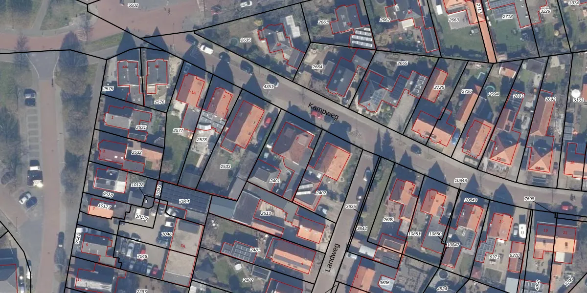 Kampweg 7 is gelegen op kadastraal perceel HDW00D2401. Deze kadastrale aanduiding is uniek en wordt gebruikt door het Kadaster om eigendomsrechten en andere zakelijke rechten vast te leggen. Het perceel maakt onderdeel uit van de kadastrale gemeente Harderwijk.