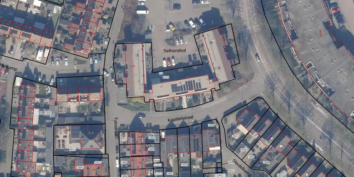 Het perceel waarop Kapittelstraat 8 staat heeft een oppervlakte van 1930 m². Dit is een zeer groot perceel. De perceeloppervlakte wordt geregistreerd door het Kadaster. Gedetailleerde informatie over de maten van dit perceel kunt u vinden in het rapport Kadastrale kaart met maatvoering van Kapittelstraat 8.