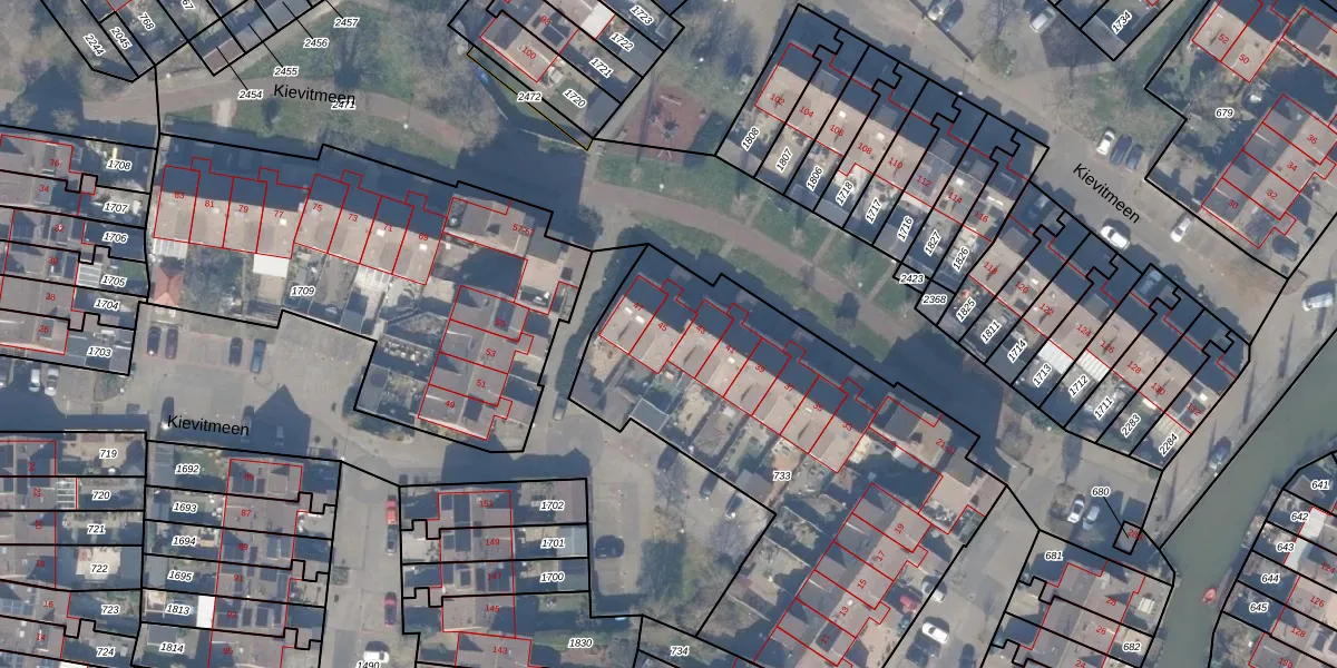 Kievitmeen 45 is gelegen op kadastraal perceel HDW00F733. Deze kadastrale aanduiding is uniek en wordt gebruikt door het Kadaster om eigendomsrechten en andere zakelijke rechten vast te leggen. Het perceel maakt onderdeel uit van de kadastrale gemeente Harderwijk.