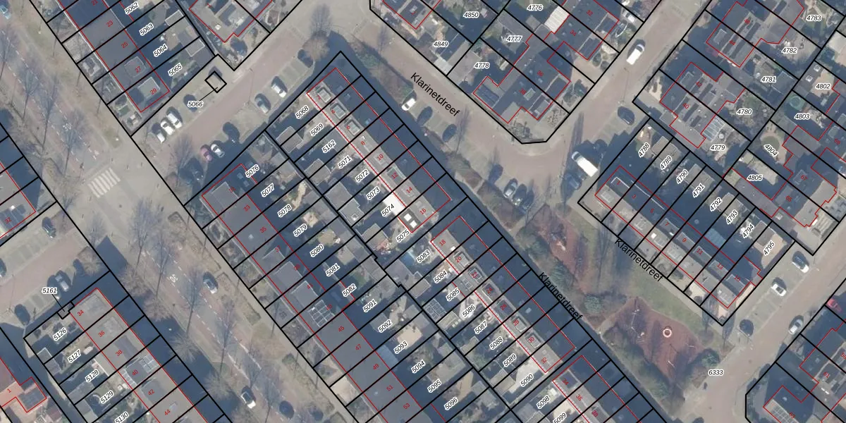 Klarinetdreef 16 is gelegen op kadastraal perceel HDW00I5075. Deze kadastrale aanduiding is uniek en wordt gebruikt door het Kadaster om eigendomsrechten en andere zakelijke rechten vast te leggen. Het perceel maakt onderdeel uit van de kadastrale gemeente Harderwijk.