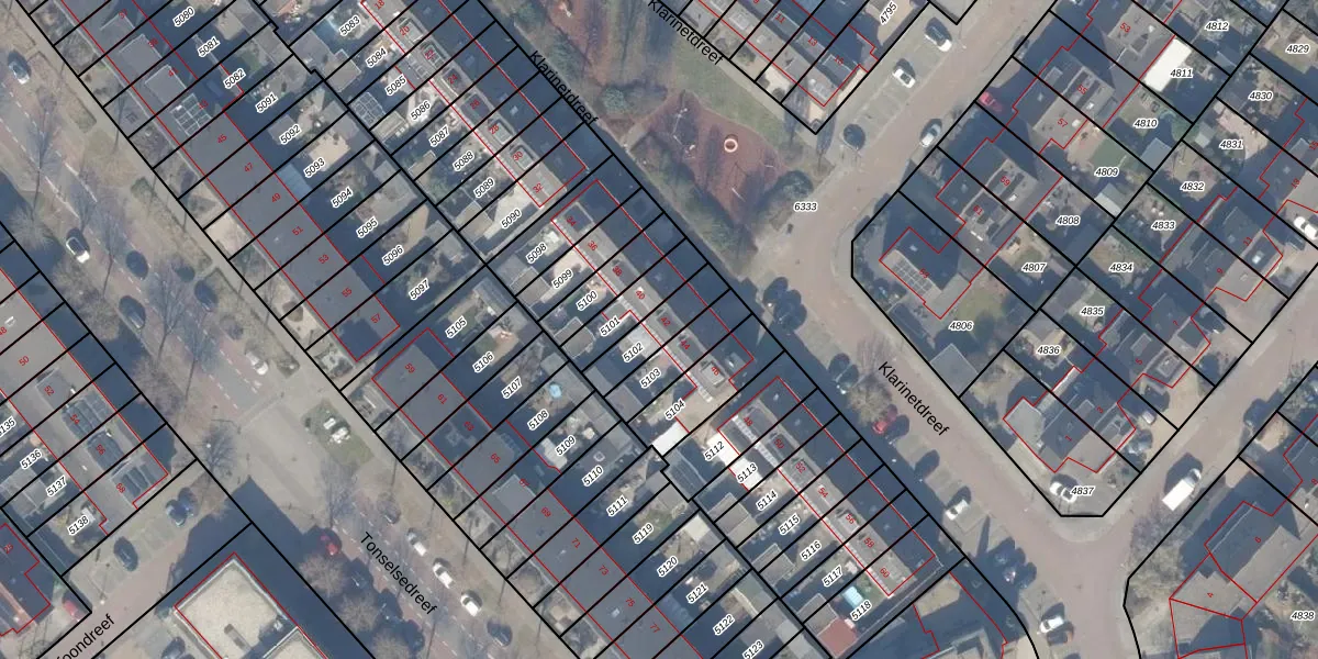 Gebruik de zoekbalk of klik op een perceel voor informatie over de adressen binnen dit perceel.