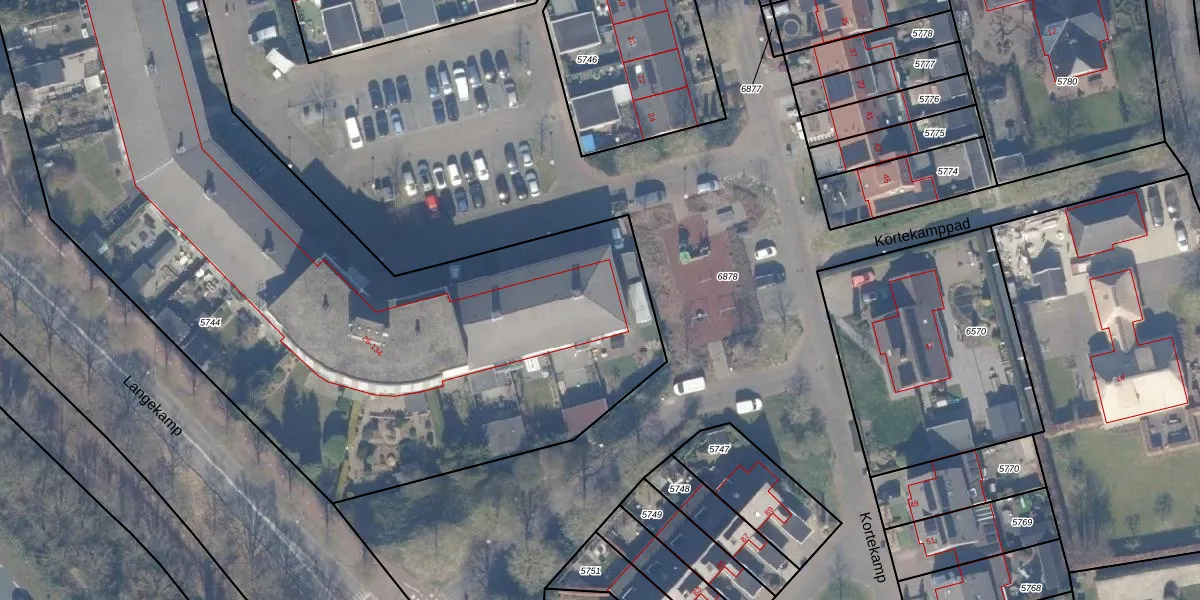 Het perceel waarop Kortekamp 52 staat heeft een oppervlakte van 4710 m². Dit is een zeer groot perceel. De perceeloppervlakte wordt geregistreerd door het Kadaster. Gedetailleerde informatie over de maten van dit perceel kunt u vinden in het rapport Kadastrale kaart met maatvoering van Kortekamp 52.