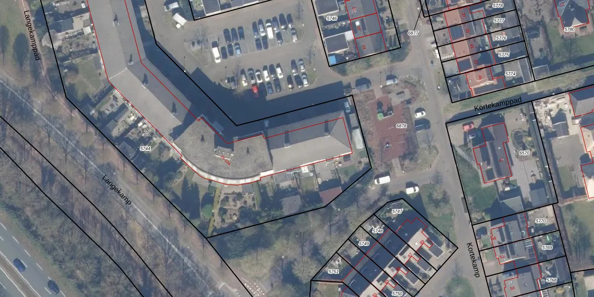 Het perceel waarop Kortekamp 56 staat heeft een oppervlakte van 4710 m². Dit is een zeer groot perceel. De perceeloppervlakte wordt geregistreerd door het Kadaster. Gedetailleerde informatie over de maten van dit perceel kunt u vinden in het rapport Kadastrale kaart met maatvoering van Kortekamp 56.