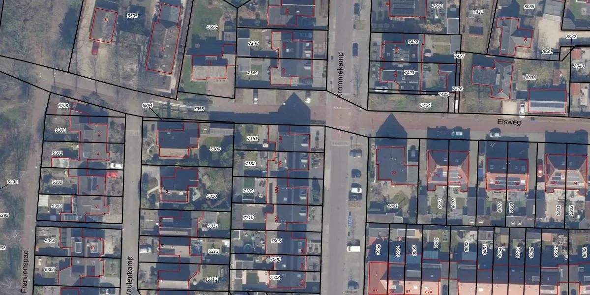 Gebruik de zoekbalk of klik op een perceel voor informatie over de adressen binnen dit perceel.