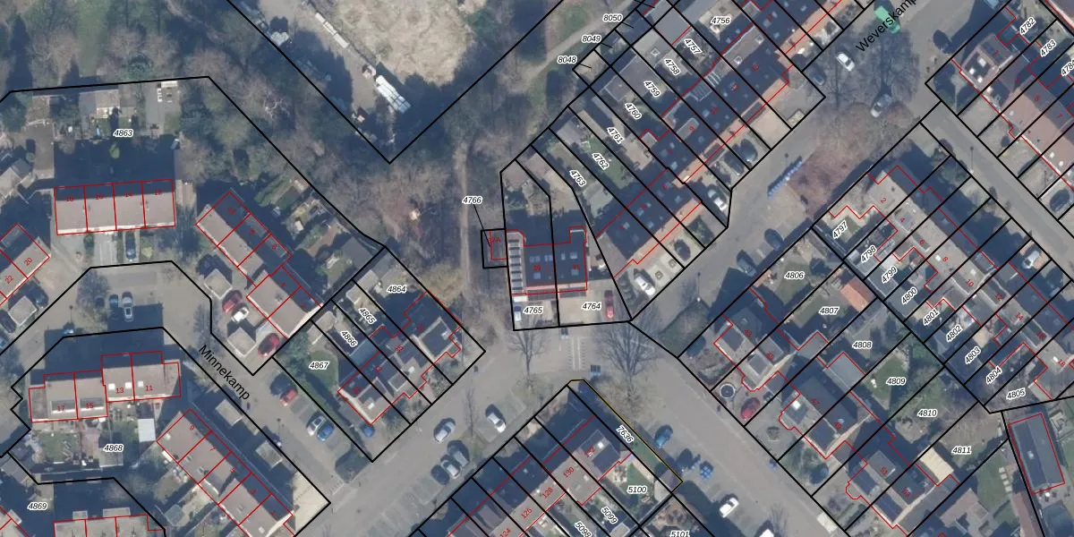 Gebruik de zoekbalk of klik op een perceel voor informatie over de adressen binnen dit perceel.