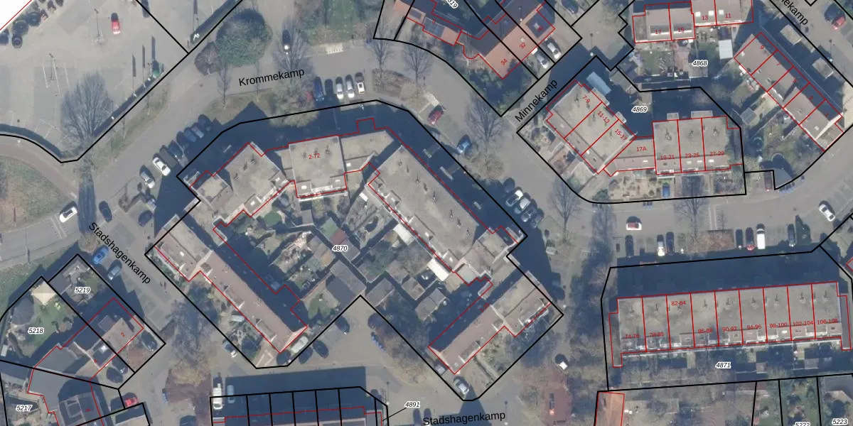 Krommekamp 46 is gelegen op kadastraal perceel HDW00B4870. Deze kadastrale aanduiding is uniek en wordt gebruikt door het Kadaster om eigendomsrechten en andere zakelijke rechten vast te leggen. Het perceel maakt onderdeel uit van de kadastrale gemeente Harderwijk.